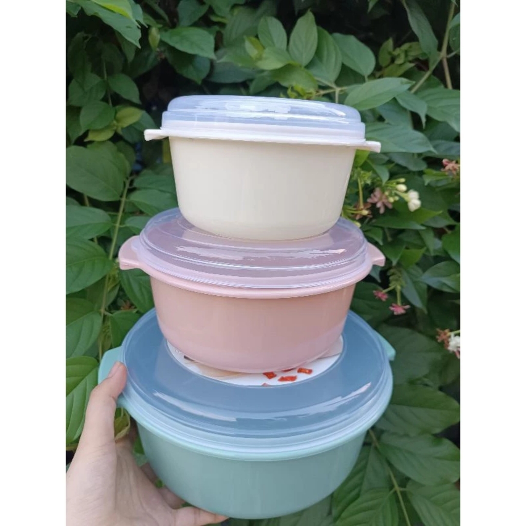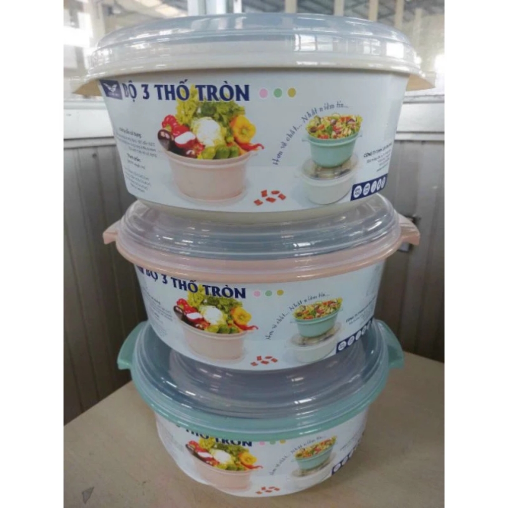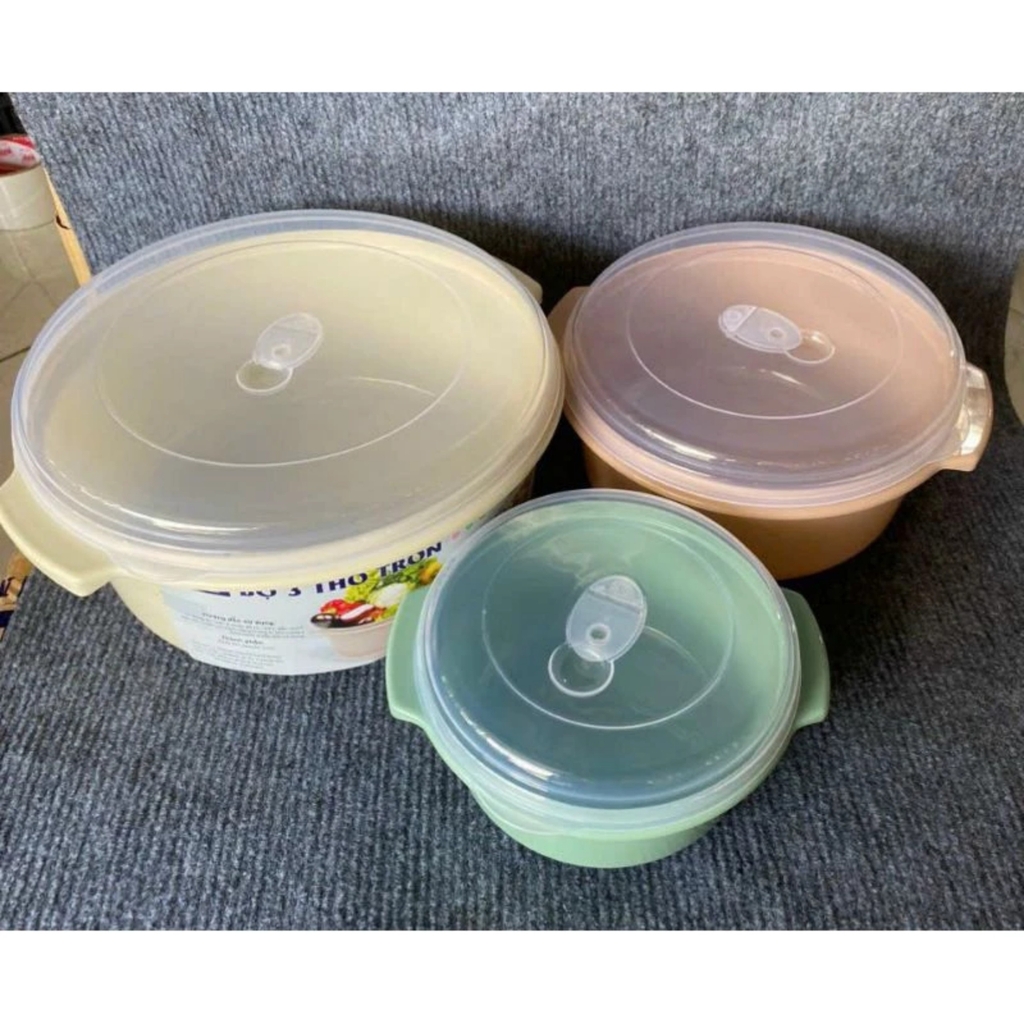Bộ 3 thố nhựa Lưu Đại Phúc tròn có nắp có nút mở thoát hơi