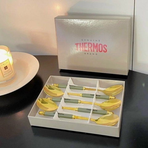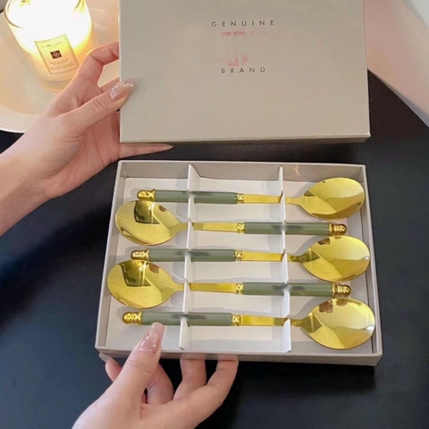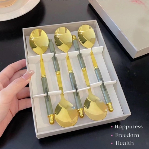 Set 5 thìa inox 304 mạ vàng cán dài sang trọng cao cấp