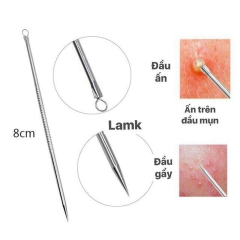 - Dùng đầu cong của nhíp ấn vào xung quanh nhân mụn để mụn chồi lên, sau đó dùng đầu nhọn gắp mụn ra khỏi bề mặt da