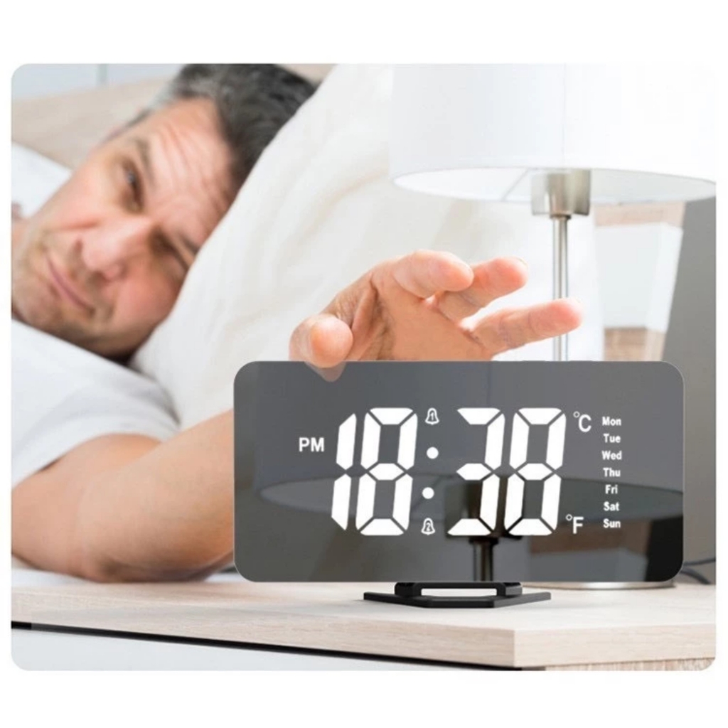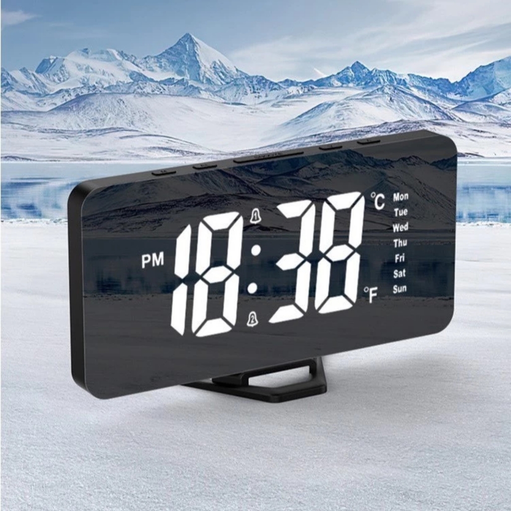 Đồng Hồ Điện Tử Đèn LED Để Bàn Tráng Gương Đo Nhiệt Độ, Thời Tiết, Báo Thức Thiết Kế Hiện Đại Decor Phòng Ngủ