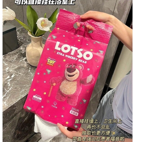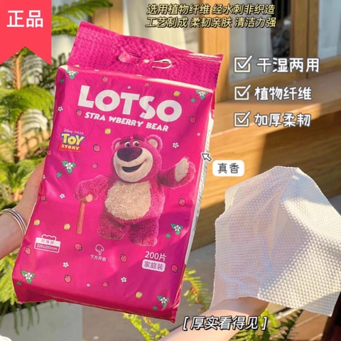 Khăn lau đa năng gấu dâu LOS.TO túi 200 tờ chất khăn mềm mướt êm ái an toàn cho da