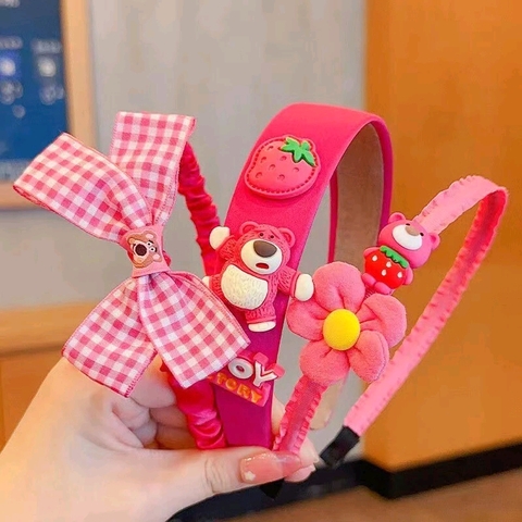 Set 3 Băng đô cài tóc/bờm tóc cho bé hoạt hình gấu dâu Lotso bọc vải caro phong cách Hàn Quốc xinh xắn