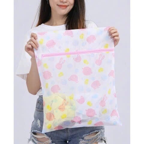 - Túi giặt được làm bằng vải lưới mỏng dệt thưa và có những lỗ thủng, đủ to để cho nước, bột giặt, nước xả chui vào và thoát ra nhưng vẫn đảm bảo đủ nhỏ để ngăn không cho quần áo trong túi bị cuốn vào trong lồng máy.