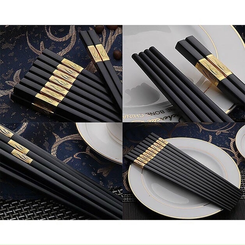 🍀 Đũa hợp kim chất lượng cao cấp nhất, mạ vàng, thân kẻ caro, chịu được nhiệt độ lên đến 260 độ C, đũa dài tiêu chuẩn 27cm. Màu đen, kẻ ô vuông, mạ vàng phía cuối, siêu bền. 🔐 THÔNG TIN SẢN PHẨM: