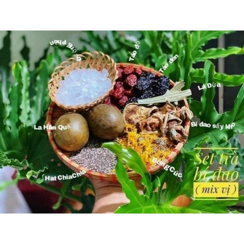 - Với đầy đủ 12 vị: bí đao, râu bắp, lá dứa, đường phèn, cỏ tranh, táo trái, bông cúc ,long nhãn..... đặc biệt có la hán quả và hạt chia giúp nồi nước sâm bí đao thanh mát, ngon, chất lượng mà nấu còn rất tiết kiệm.